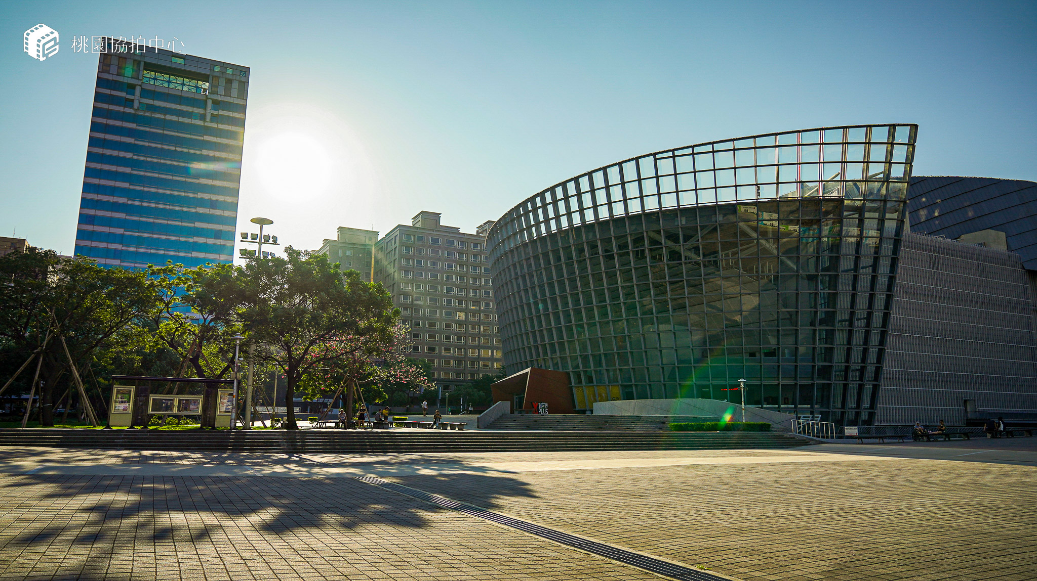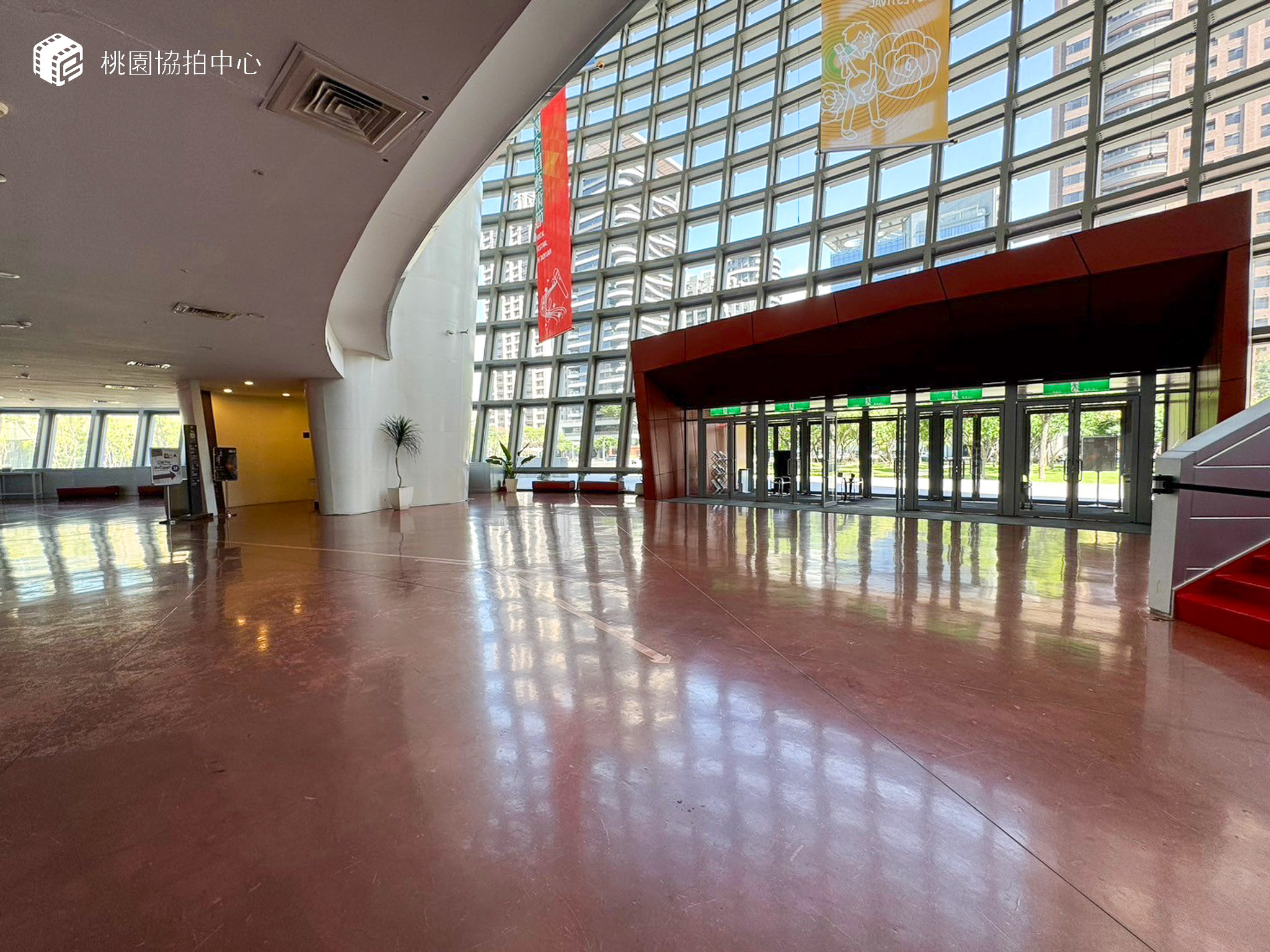 桃園展演中心位於桃園中正藝文特區,主體建築由鋁合金板材構建而成,流線型的設計從大地延伸向上盤旋,有如律動的彩帶,直奔天際,與之呼應的玻璃帷幕,格狀結構層層堆疊,在日間陽光折射下閃耀光芒,宛如一顆璀璨寶石;夜晚光彩奪目的LED燈外牆,則以多變色彩幻化出都會繽紛的現代時尚感;不規則幾何形狀的紅色大門更引領民眾進入充滿創意與驚喜的藝術空間。
