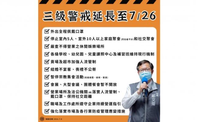 全國三級防疫延長至7/26 桃園各場景防疫更新
