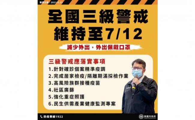 全國三級防疫延長至7/12 桃園各場景措施更新