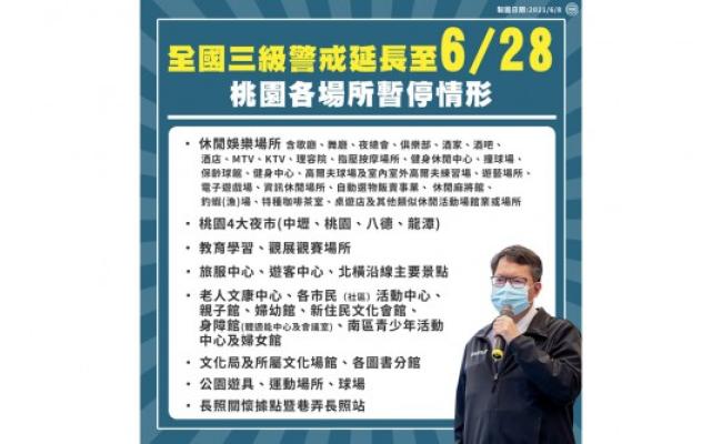 全國三級防疫延長至6/28 桃園各場景措施更新