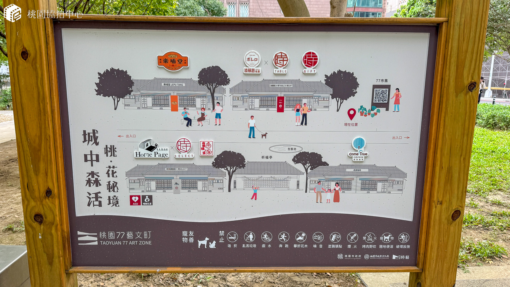 「桃園77藝文町」前身為桃園警察局日式宿舍群,位於桃園火車站前商圈,規劃為歷史建築,市府重修後活化為文創園區,保留日式木構建築的歷史風貌。活化後的「桃園77藝文町」結合日治時期建築和中正路77巷的意涵,由市民票選命名而成,是桃園最受歡迎的拍照打卡景點之一。