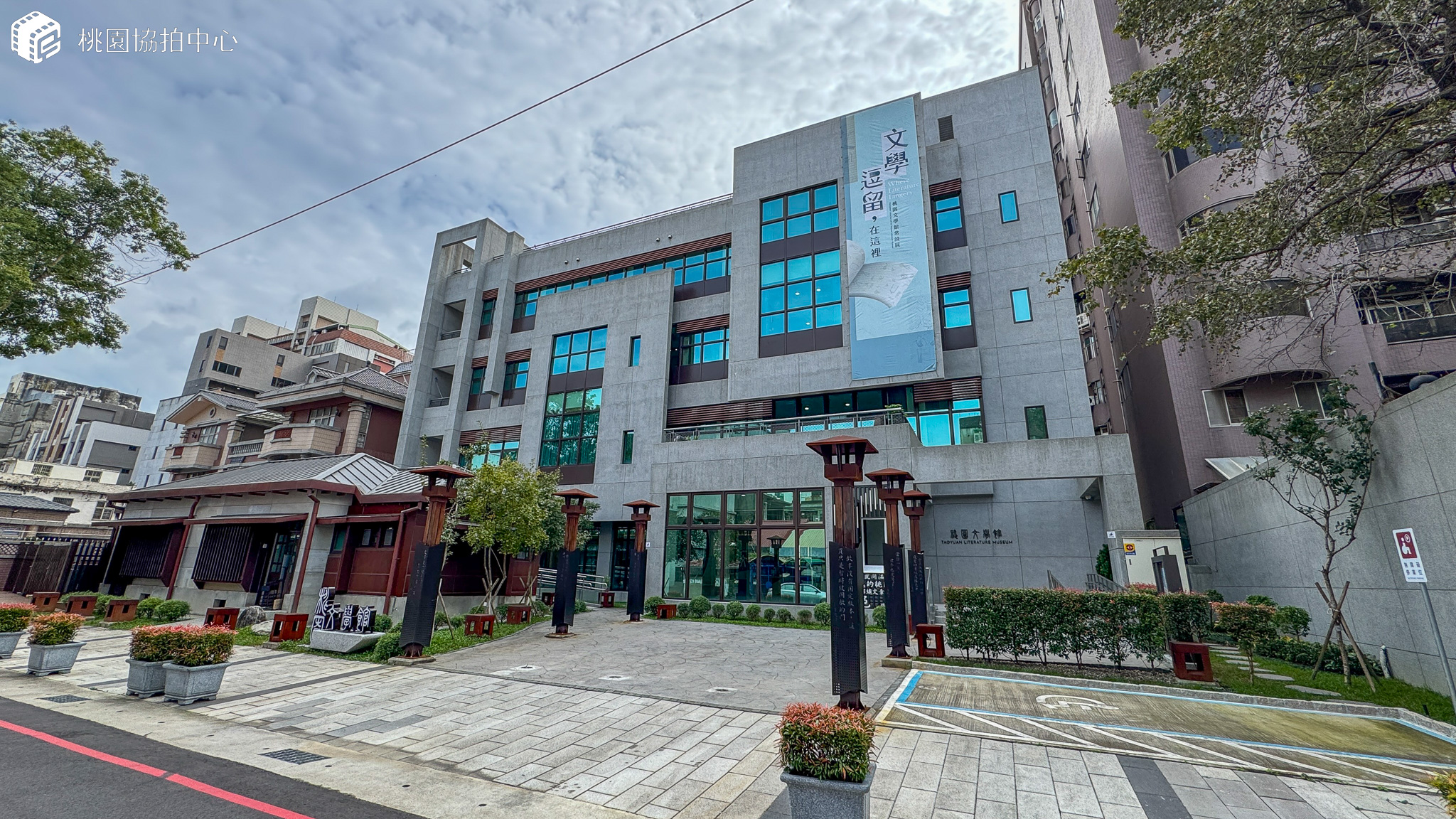 桃園文學館坐落於桃園區最具傳統、歷史景觀的市街中心,舊稱桃仔園街/桃仔園城的範圍,位於忠孝街與東國街5巷間,主要連外道路為東國街、成功路以及中山東路。為推動地方文化發展與空間活化,桃園市政府將日治時期的街營宿舍,改建可作為文學欣賞、推廣、分享及深化的場所。