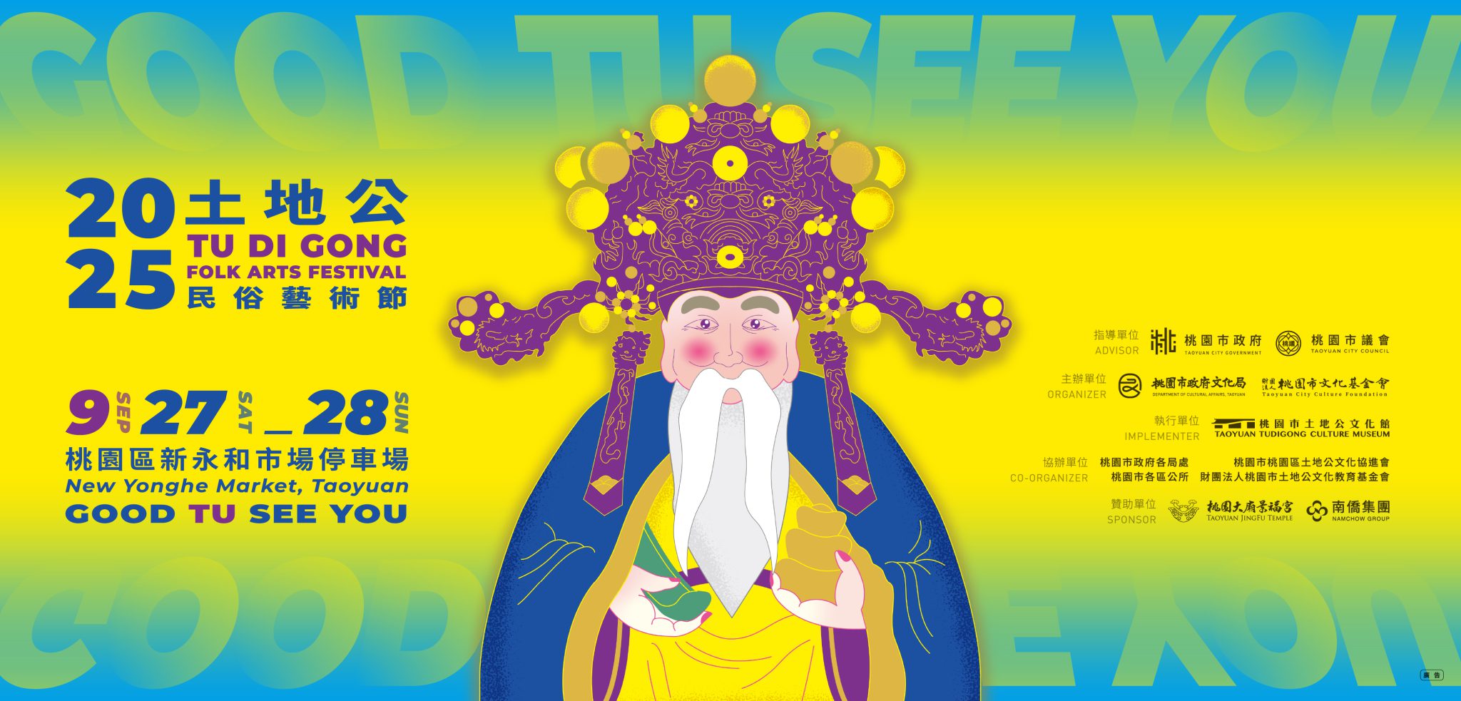 2025年的土地公民俗藝術節以推廣土地公信仰文化、發展民俗藝術文化教育、社區營造與環境永續為主軸,在9月27、28日於桃園市新永和市場停車場舉辦。主題「GOOD TU SEE YOU」巧妙結合中英文諧音與拼音 TU,傳遞土地公溫暖守護的形象。今年規模再創18年新高,近300尊土地公神尊、3000名護駕人員齊聚,參與宮廟遍及桃園13區、全台各縣市及馬來西亞,儼然已成為一個國際交流的文化平台。