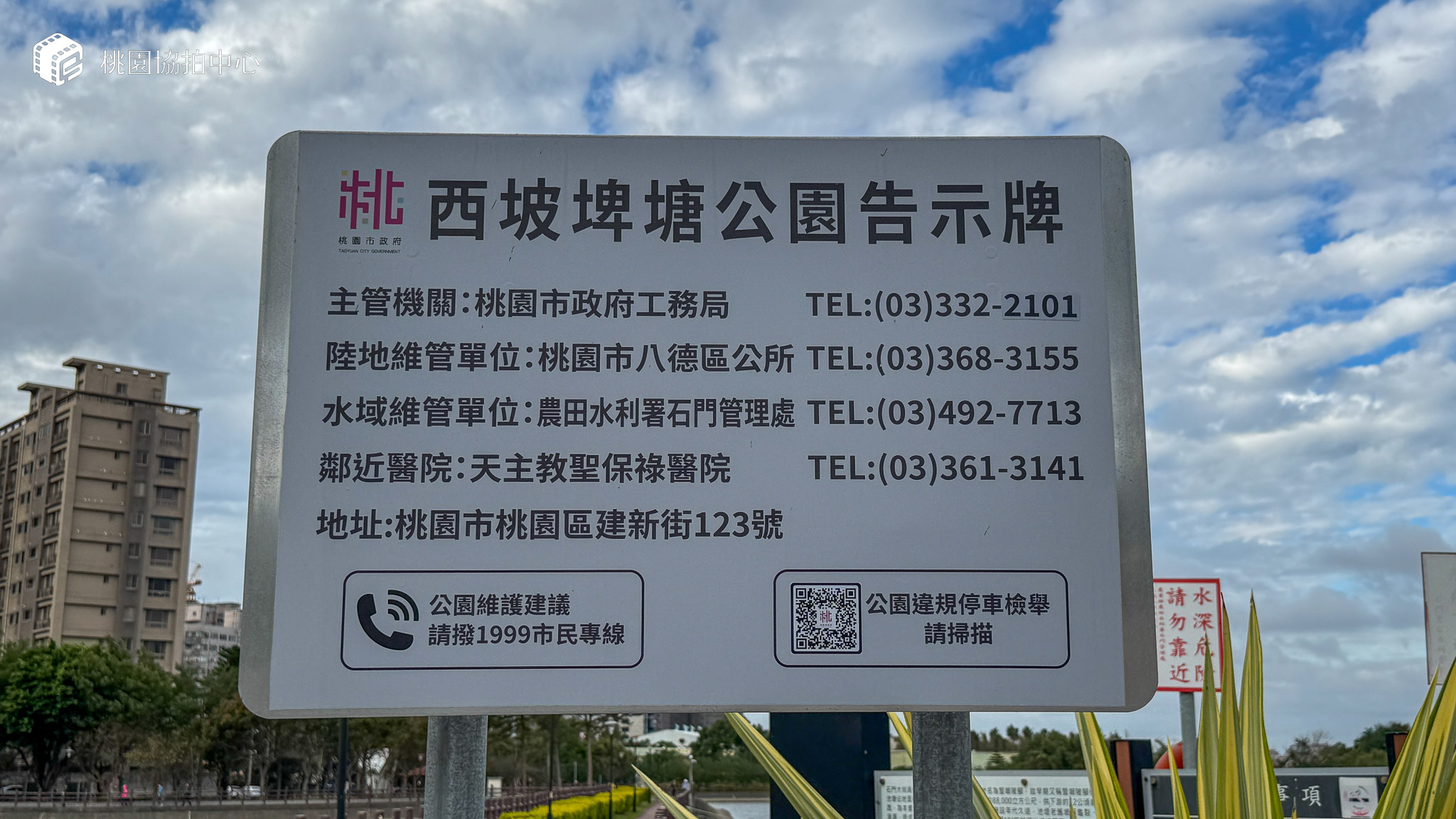 為解決東門溪上游大湳及大樹林淹水情形,市府與石門農田水利會合作,將西坡埤塘轉型為滯洪池,設置為「西坡埤塘生態公園」。水域面積5公頃、陸地面積1.2公頃,蓄水量約8萬8,000立方公尺,不僅在缺水期具有蓄水功能,提供灌溉水源,更兼具滯洪防災功能。為八德區水域面積最廣的埤塘公園,成為在地最具特色的地景。
