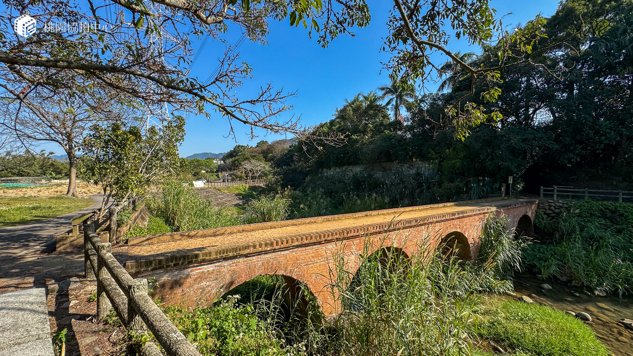 大平紅橋座落在龍潭區三坑里,因全橋以紅磚構造,故名紅橋。這座橋樑建於西元1923年,由大平、三坑里民發起興建,在庄役場(區公所)的補助配合鄉民捐款,以及日本人捐贈之下,由大倉組營造場負責興建,採用與桃園大圳工事相同的清水磚為材料建造而成。橋身長約十餘公尺,跨越打鐵坑溪,曾是大平里民對外的主要聯絡道,共設有五座橋拱,造型優雅,迄今依然完整如初。目前大平紅橋附近已規劃為親水公園,是休閒的好去處。