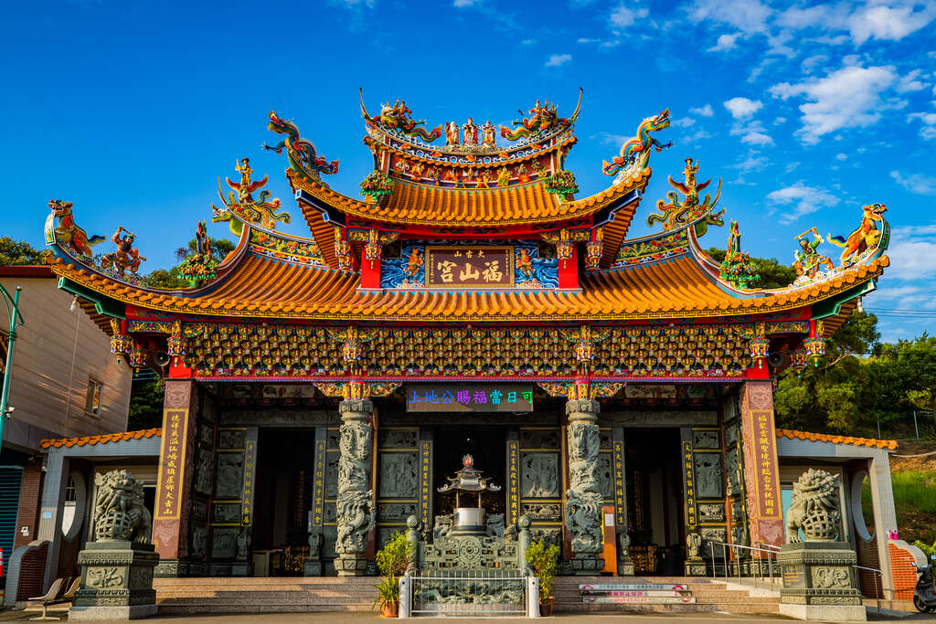 自蘆竹區南山路的山腳國小轉入山上產業道路,一整片都是大古山休閒農業區,出產稻米、有機蔬果、園藝花卉等農作物,而大古山登山步道公園是其中的中心點,若開車上來可停在福山宮廣場前停車場,一下車便可看到視野開闊的景色,令人感到無比輕鬆,入夜後更可欣賞萬家燈火美景。