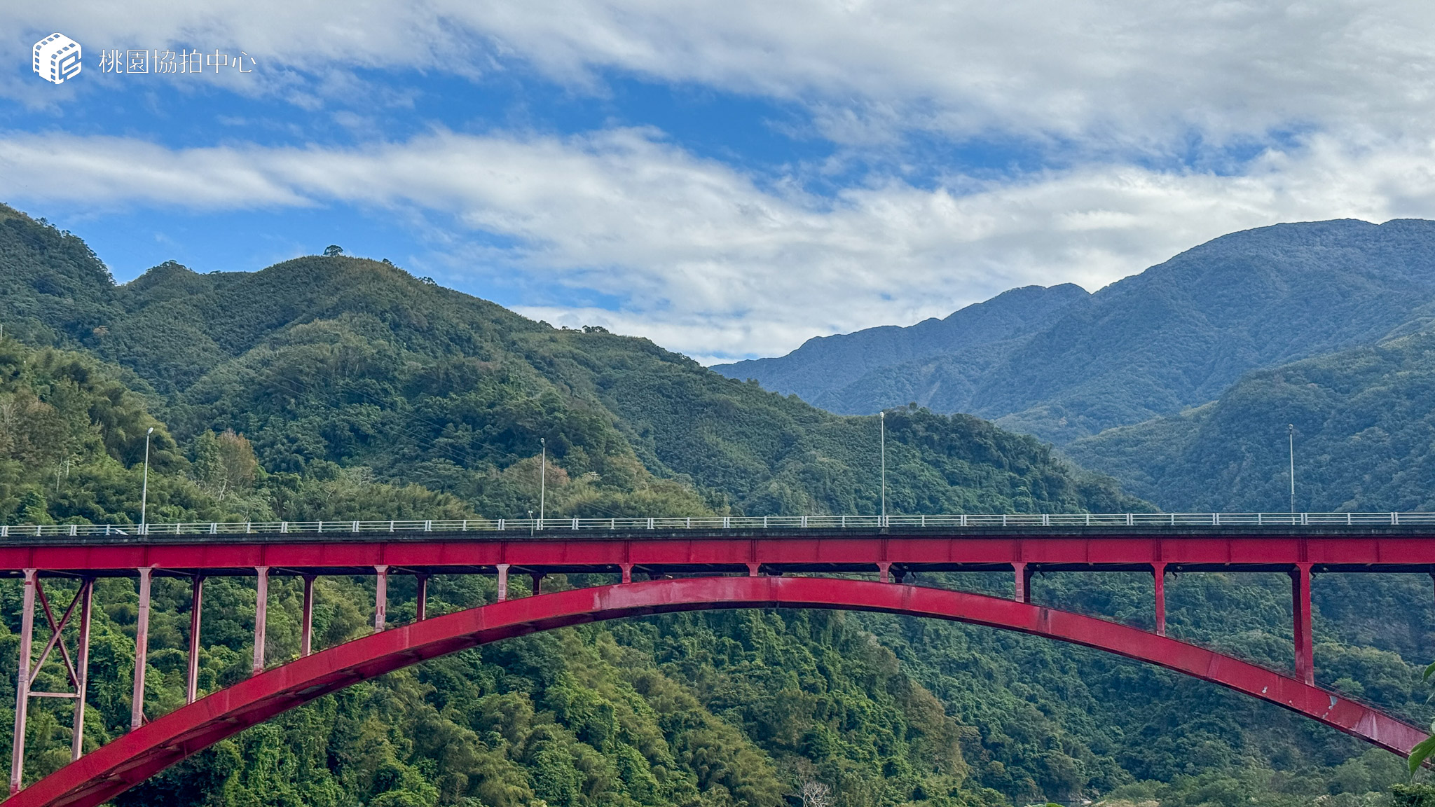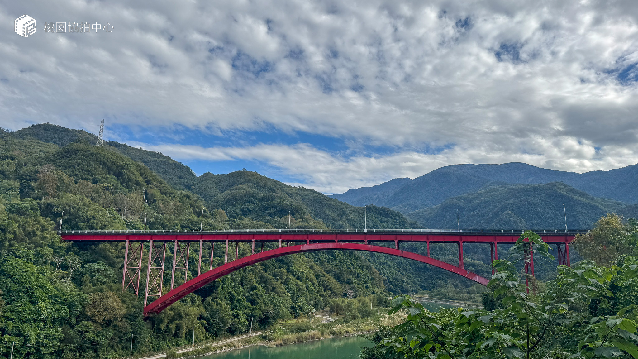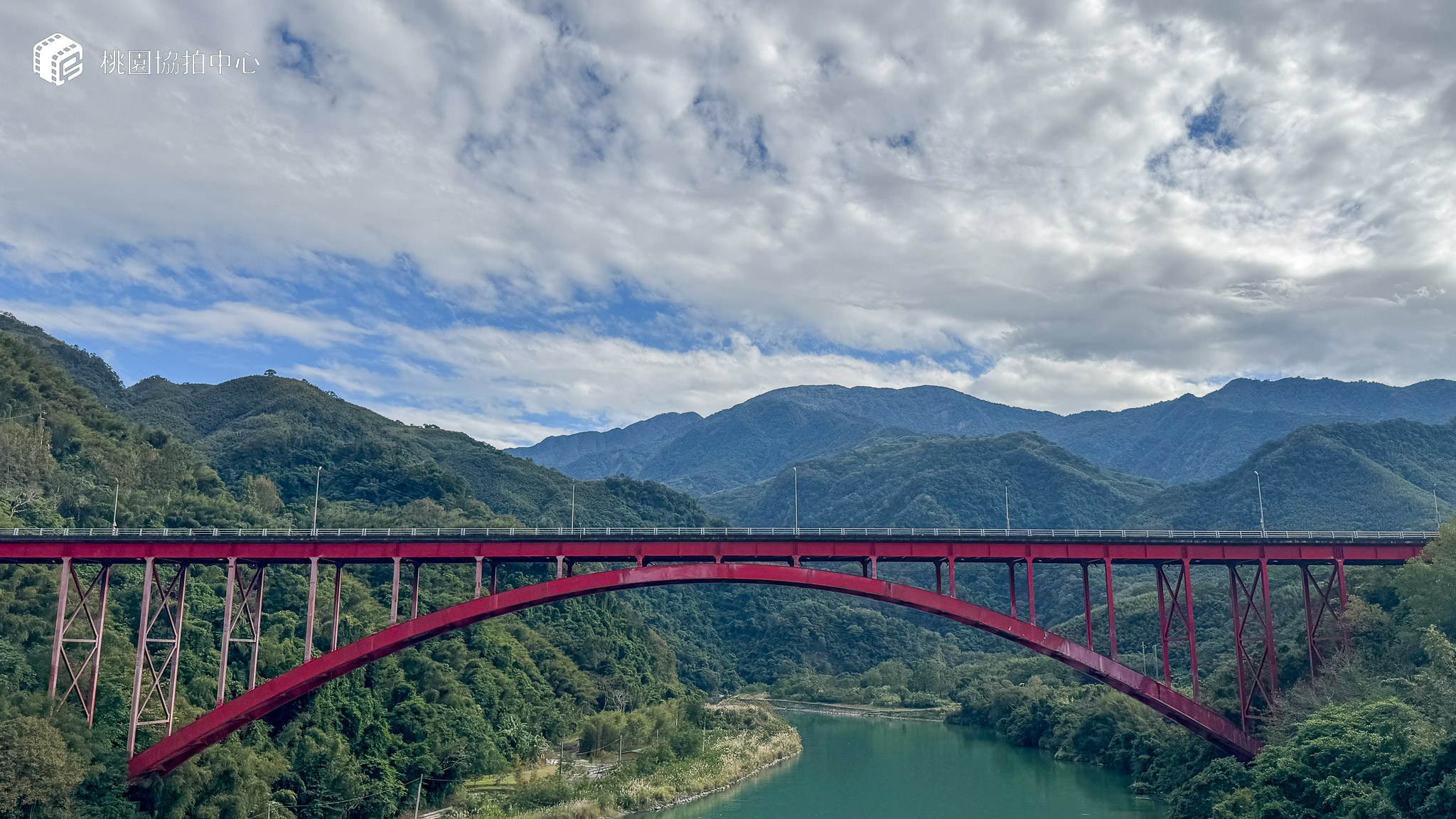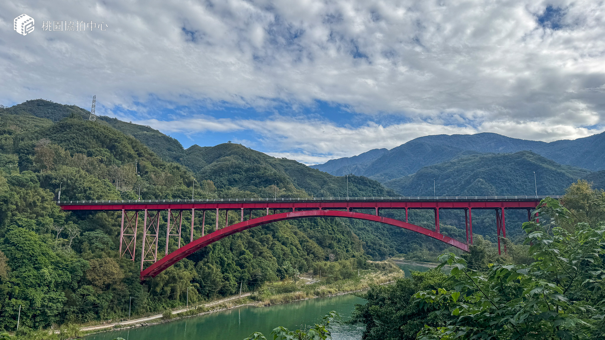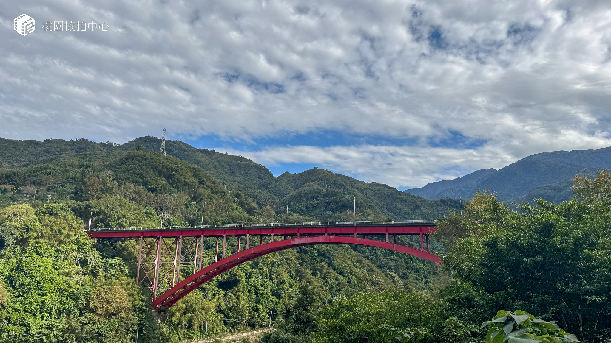 羅浮橋跨越大漢溪石門水庫上游,行政區轄屬桃園市復興區羅浮里,於民國81年1月8日開工興建,83年5月18日竣工,是一座全長230公尺的上路式鋼拱橋,最大跨距230公尺,最大淨寬10.8公尺,橋面各留120公分的人行道,周邊設有行人徒步區和觀景平台,能居高臨下欣賞這裡的山水美景,也讓遊客停留賞景及攝影,尤其在美麗的晴天,紅色的羅浮橋倒影和一旁的青山綠水相互輝映。