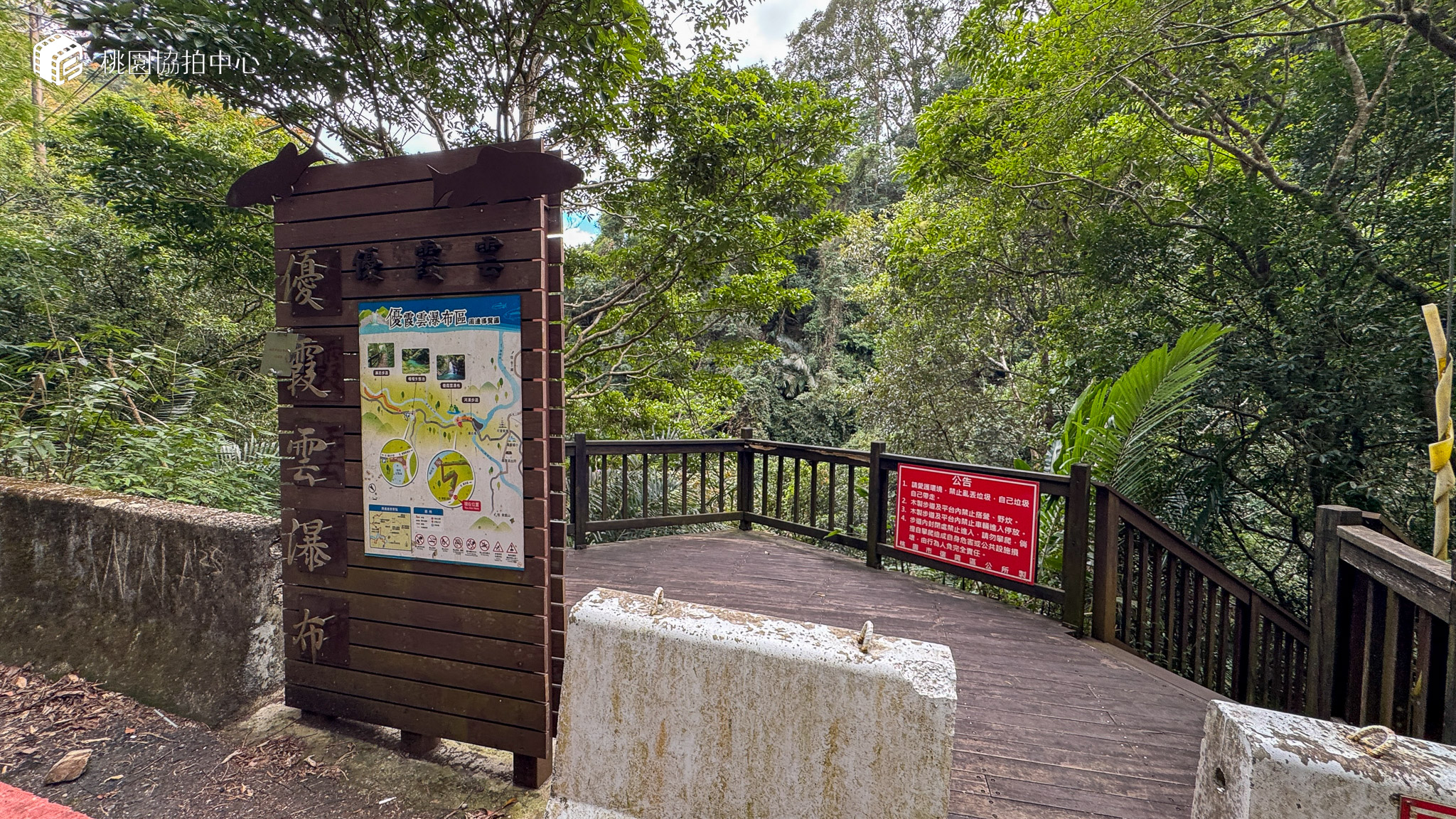 沿著庫志步道步行而下約十分鐘,進入觀景平台旁的木棧步道,大約