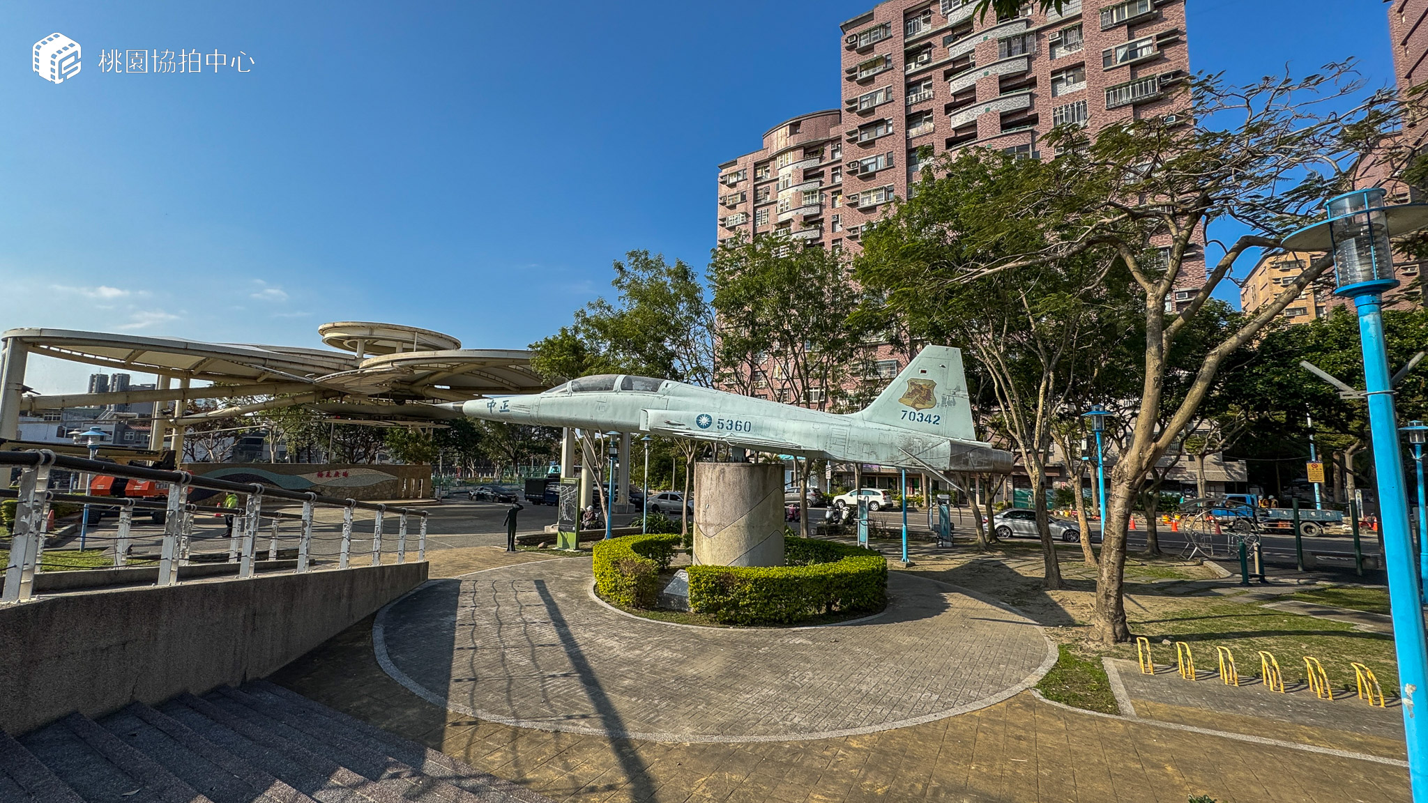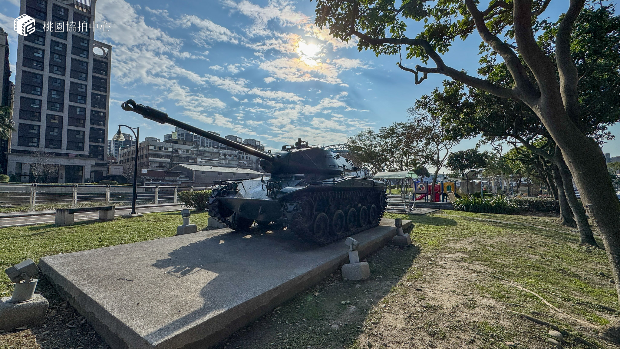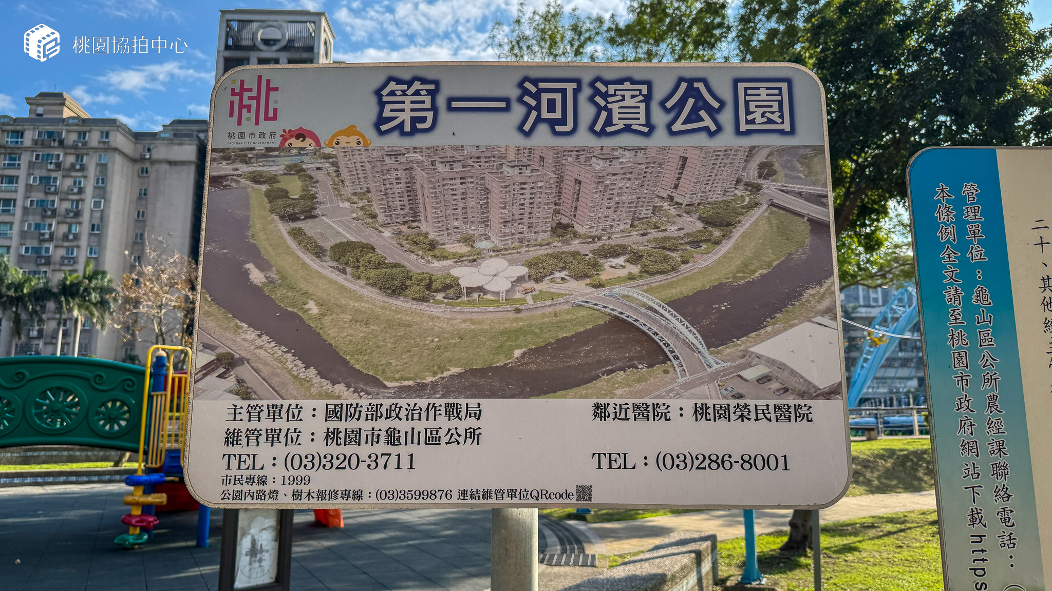 第一河濱公園鄰近陸光二村,入口處的梅花廣場特別以五瓣梅花做為天幕造型,彰顯陸光社區愛家、愛國、愛社區的精神。此外,公園也放置了多架除役軍事武器,有F-5F戰鬥機、M41A3輕型戰車、美造M1式40公厘防空快砲等。