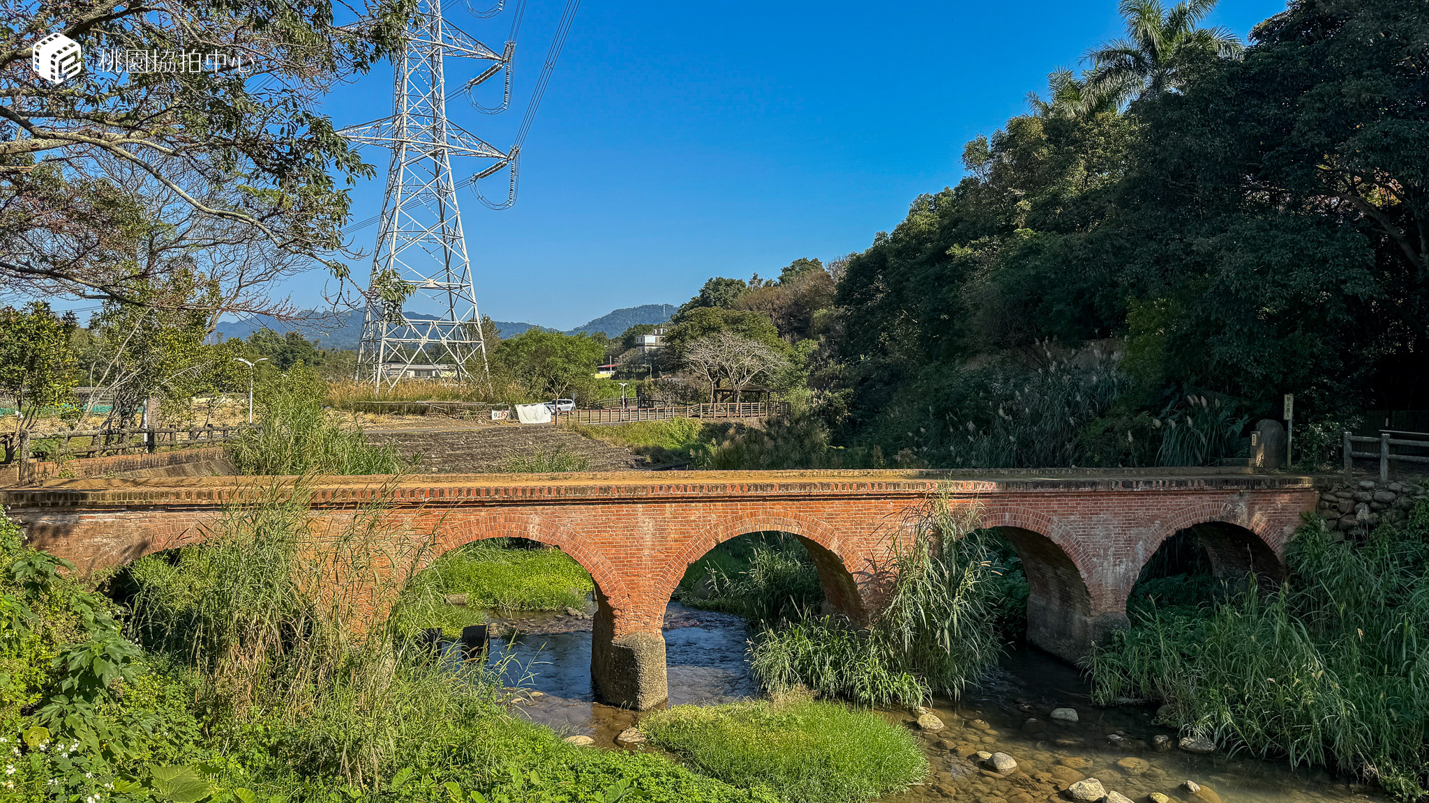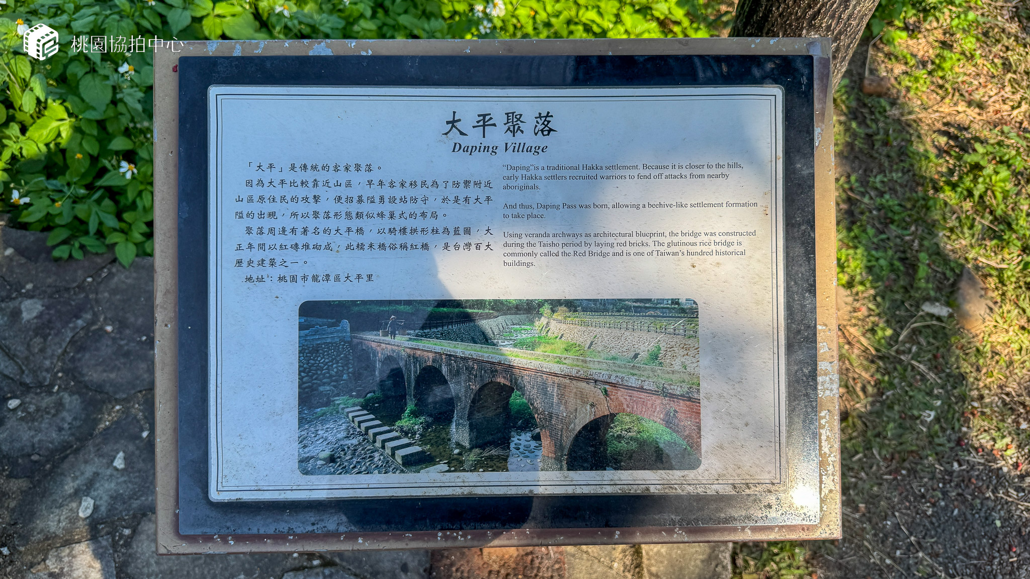 大平紅橋座落在龍潭區三坑里,因全橋以紅磚構造,故名紅橋。這座橋樑建於西元1923年,由大平、三坑里民發起興建,在庄役場(區公所)的補助配合鄉民捐款,以及日本人捐贈之下,由大倉組營造場負責興建,採用與桃園大圳工事相同的清水磚為材料建造而成。橋身長約十餘公尺,跨越打鐵坑溪,曾是大平里民對外的主要聯絡道,共設有五座橋拱,造型優雅,迄今依然完整如初。目前大平紅橋附近已規劃為親水公園,是休閒的好去處。