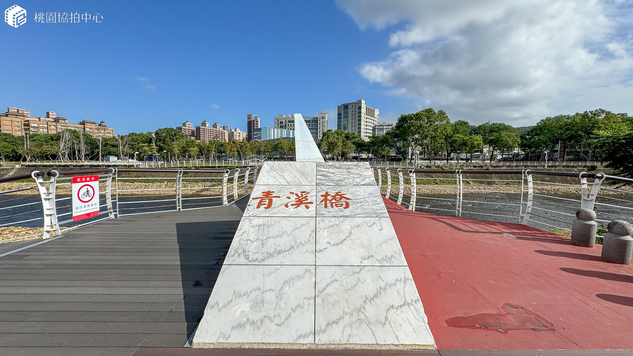 園區內設置一座彩虹青溪橋、兒童遊樂區、南崁溪邊觀景看台、多項運動主題區,包含籃球場、溜冰場、運動健身器材區及環繞公園的人行步道與自行車道、裝置藝術、公共廁所,供民眾休閒散步好去處。